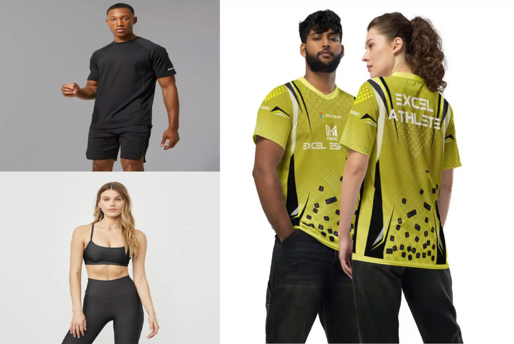 Camisetas y tops deportivos en telas DRY FIT o LYCRA. Se pueden personalizar con estampado, bordado o full impresion en sublimación.